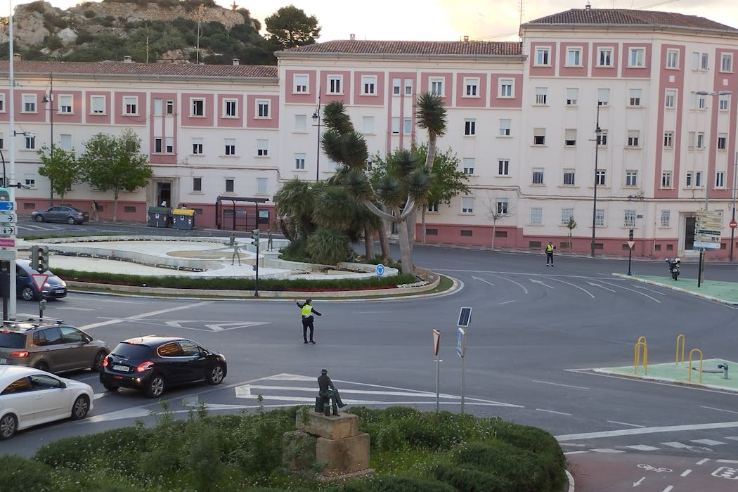 Un policía local regula el tráfico en Cartagena (Murcia) durante el apagón del pasado 28 de abril. Los semáforos dejaron de funcionar, lo que creó problemas en muchas ciudades españolas. P4K1T0/Wikimedia Commons, CC BY