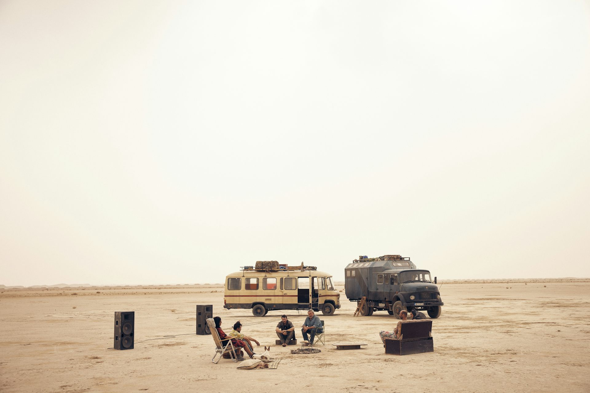Desertar es abandonar el campo de batalla. En Sirāt, esa palabra resuena literalmente cuando Tonin, con la pierna amputada, canta en tono lúdico “Le déserteur” de Boris Vian. La película muestra tres formas de exilio: la del ravero que se retira del mundo productivo en busca de comunión; la del desplazado por la guerra, expulsado sin elección; y la del peregrino que avanza hacia La Meca en busca de orientación. Tres deserciones distintas que convergen en el mismo desierto. Y quizás una cuarta, la deserción ontológica, la retirada del relato que nos sostiene para quedar expuestos, sin garantías, al misterio.